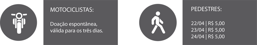 A entrada do 6º Imbituva Moto Fest será divida entre os motociclistas (motos e triciclos) e pedestres. Os carros não são autorizados a entrar, devendo ficar estacionados no local reservado do evento.